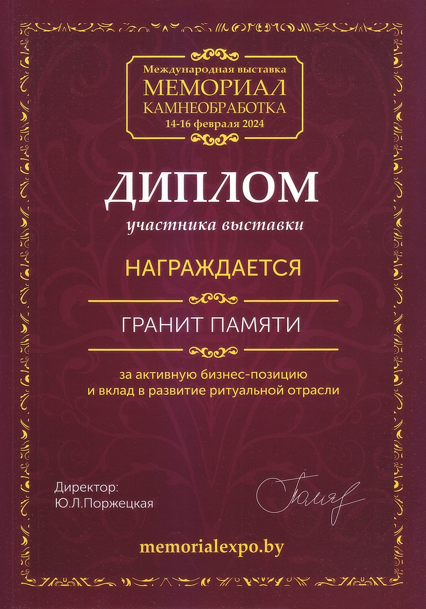 Ежегодные экспоненты профильных выставок в России «Некрополь», «Карелфорум», «Белый Тополь», «Ритуальные услуги. Камнеобработка» и в Белоруссии «Мемориал. Камнеобработка». Деятельность компании отмечена отраслевыми наградами: победители в номинации «медийность» в конкурсе «Золотая медаль Некрополь 2021», победители народного голосования на звание «Лучшая франшиза 2020», обладатели «Золотого скарпеля», номинанты на звание «Лицо Отрасли Некрополь 2020». Сотрудница компании признана «Самой обаятельной в каменной отрасли 2022».